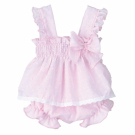 Conjunto pololo rosa con lazo.