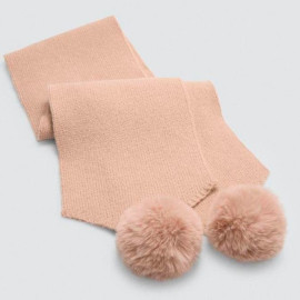 Bufanda suave con pompones en tonos neutros y pastel. Cálida, ligera y perfecta para combinar con tus looks de invierno.