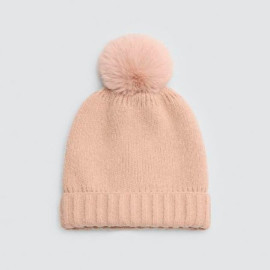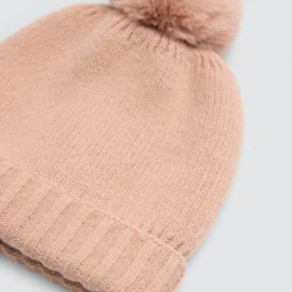 Gorro suave de punto con pompón y doble tejido. Diseño cálido en tonos neutros, ideal para los días fríos.