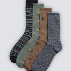 Calcetín de hombre con estampados variados y diseño cómodo, pensado para el uso diario y disponible en cuatro modelos diferentes que se venden de forma individual.